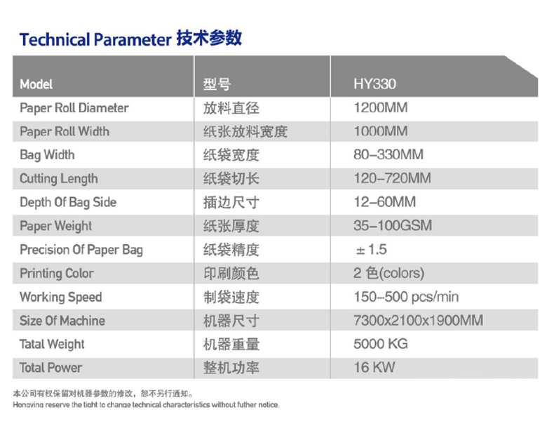 330全自動高速食品紙袋機 帶2色印刷主要特點: